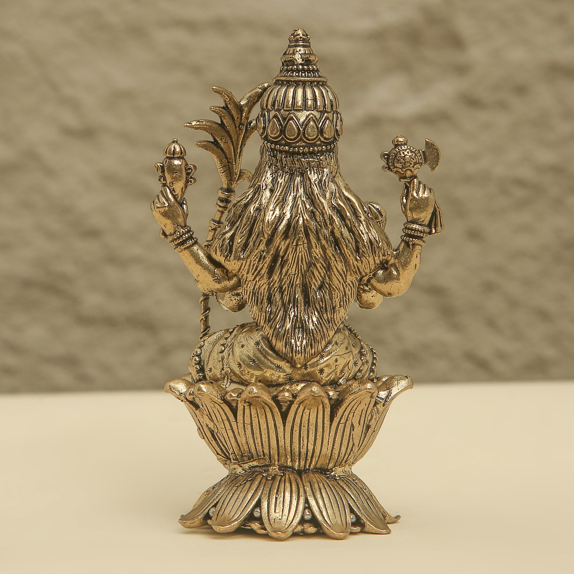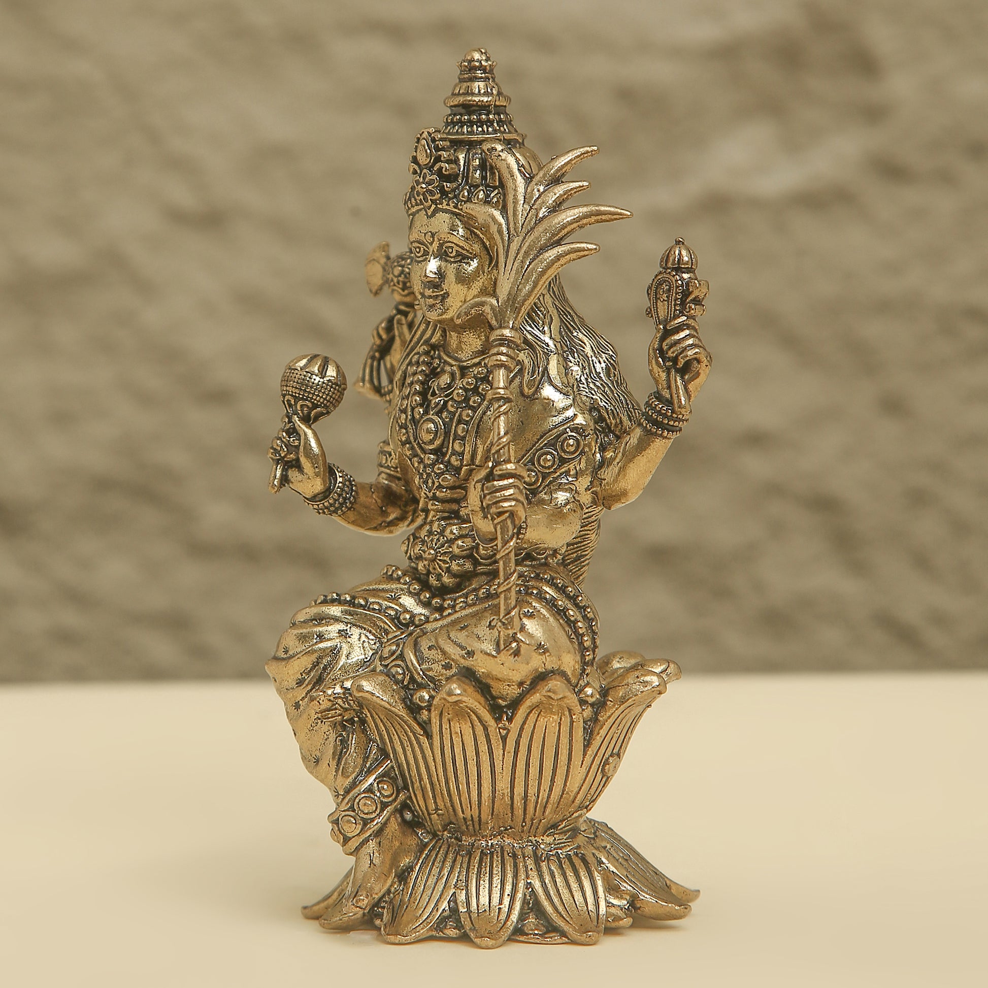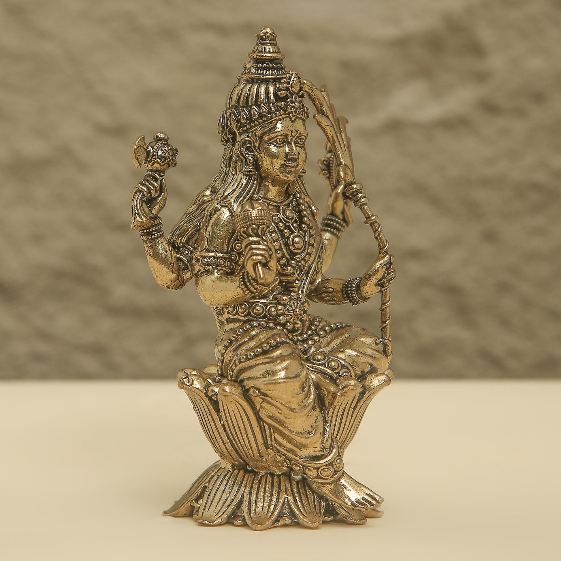 Brass Goddess Lakshmi Idol – Antique Finish Hindu Statue for Puja, Home Temple & Décor